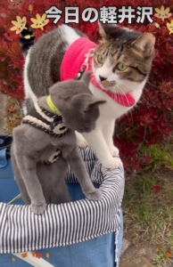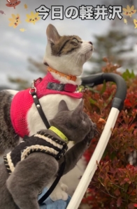 秋から冬へと少しずつ移り変わる軽井沢… 寒さに負けず、猫たちとお散歩を満喫しています🐈🍁