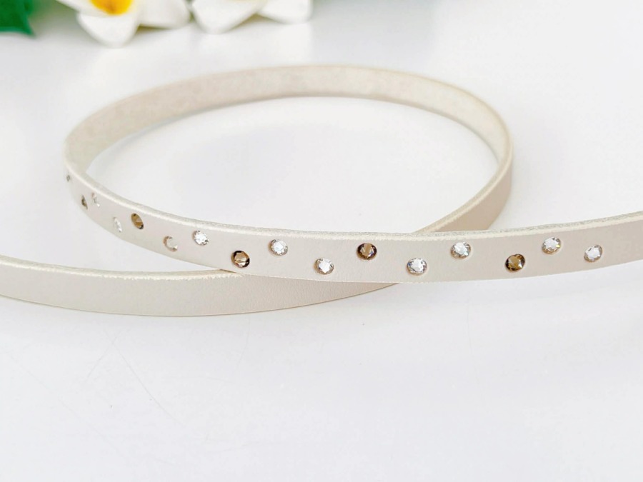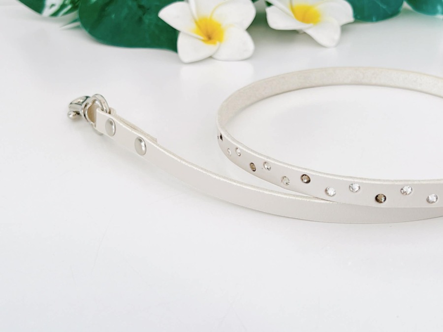 一粒一粒、熟練の革職人が特殊な技法で丁寧に埋め込んだラグジュアリーな犬用リードです。