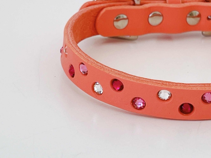 ラインストーン埋込首輪サーモンピンク《ストロベリー・ピンク》